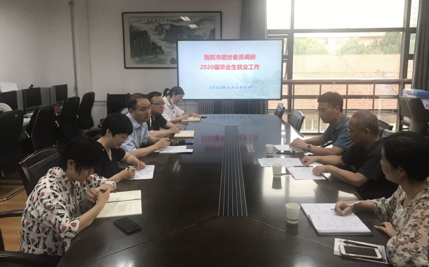 为贯彻落实习近平总书记来陕重要讲话重要指示精神和全国两会精神,落实稳就业任务,6月22日下午,我院市政协委员王坤同志就2020届毕业生就业工作进行调研,党委统战部部长王超联、就业指导处处长卢文澈及相关工作人员出席了会议。会议由王超联同志主持。